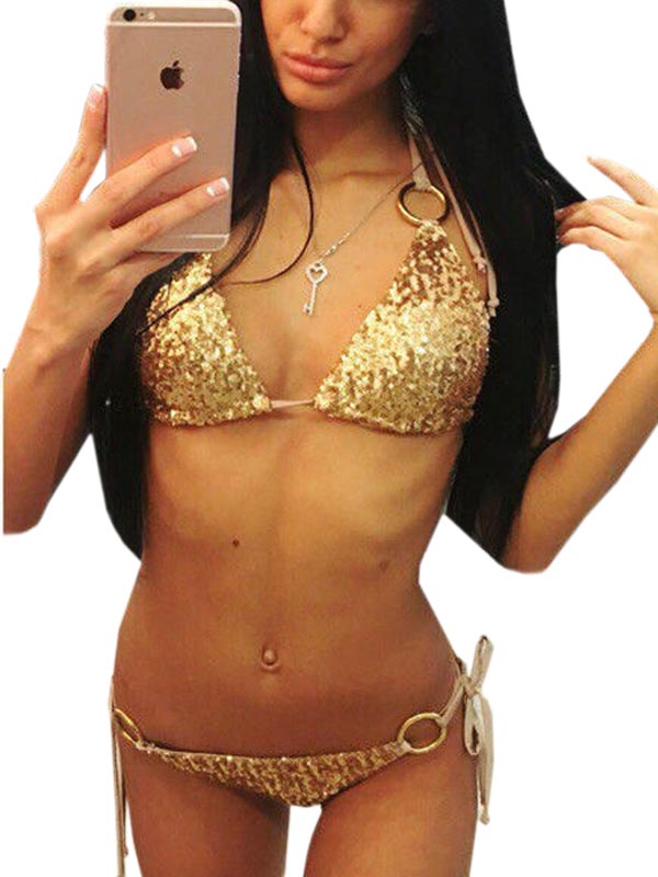 Sexy Women Eyelash Golden Bra Set