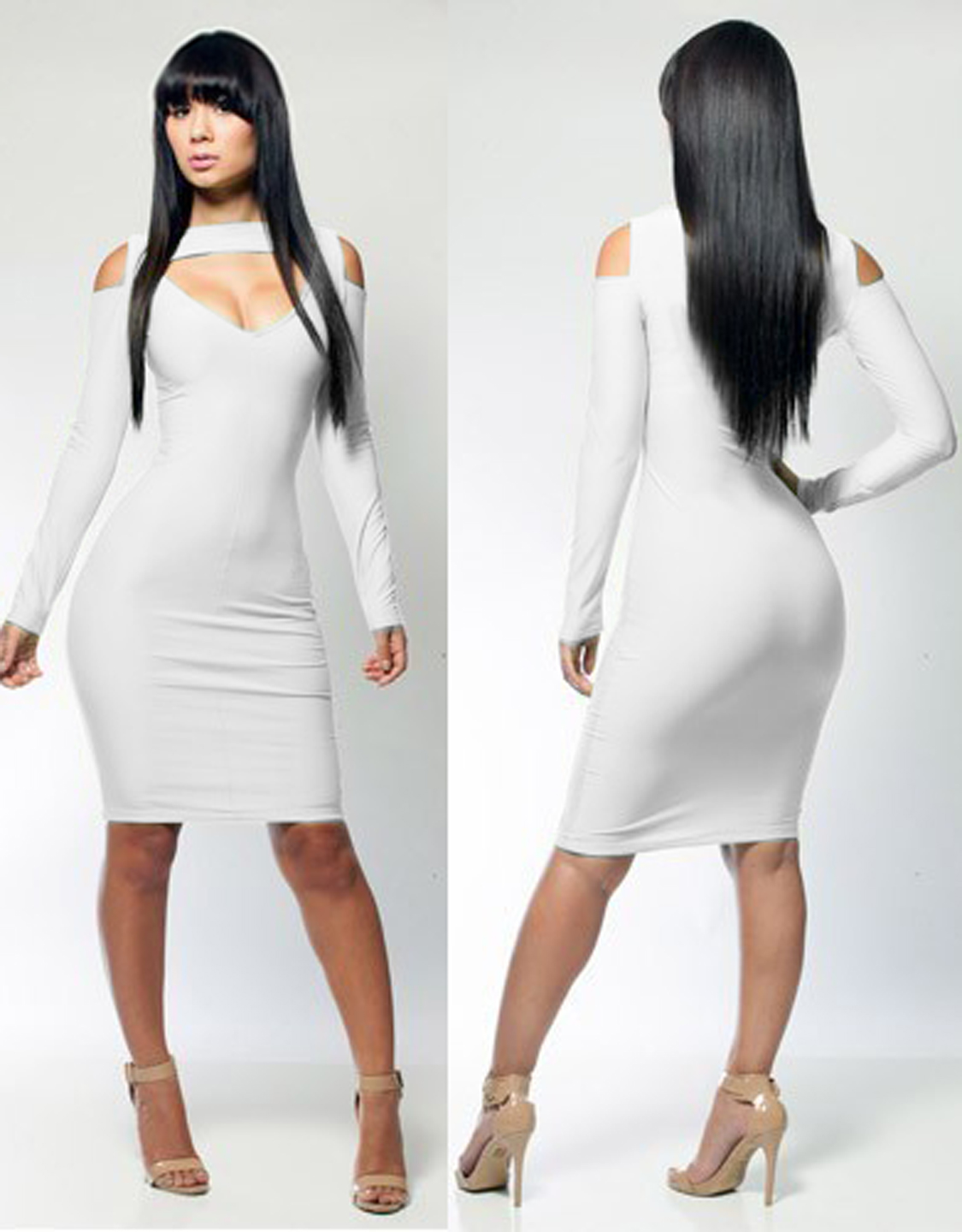 Sexy Women Long Sleeve White Slim Bodycon Clubwear Dress