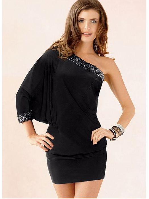Nights out necessitate a striking silhouette. This one-shoulder dress fashionably rises to the occasion courtesy of a canvas of sparkling plastic decoration . Long sleeve features a shoulder for an artful reveal. In an easy-to-wear fabric, it feels as great as it looks, making it a truly magical party piece. With the sequins around the neck and sleeve.