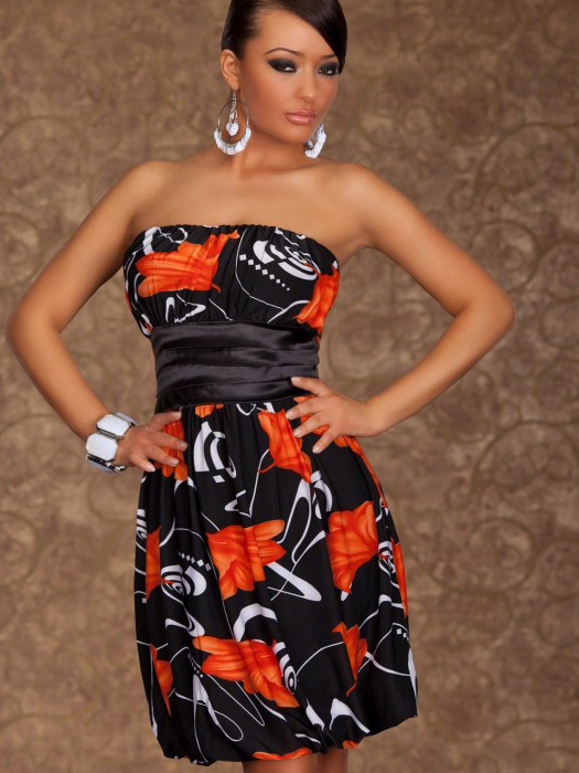 Strapless Orange Floral Dress
