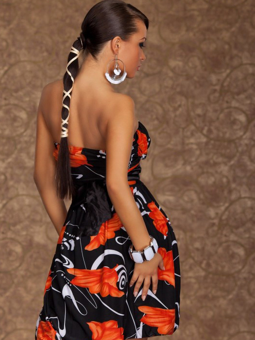 This is a fabulous style prom Sexy Dresses. It has a black belt and is covered with lovely fowers; very pretty and very in vogue. The material is cool starched cotton. It is a very flattering figure-hugging hourglass style. The dress has a boned bodice, a slightly dropped waistline and a circle skirt.