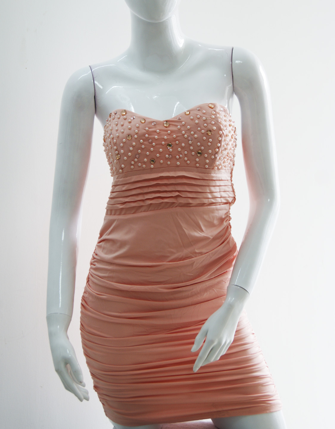Sheathe in this Strapless Reched Beading Dress to feel sexy and get eye-services for a night out. At the moment, we have seven colors for your choose, the blue, black, white, red, rose, purple,and pink online available.This dress also with the strapless design accent with the sweetheart neckline with beading detail.