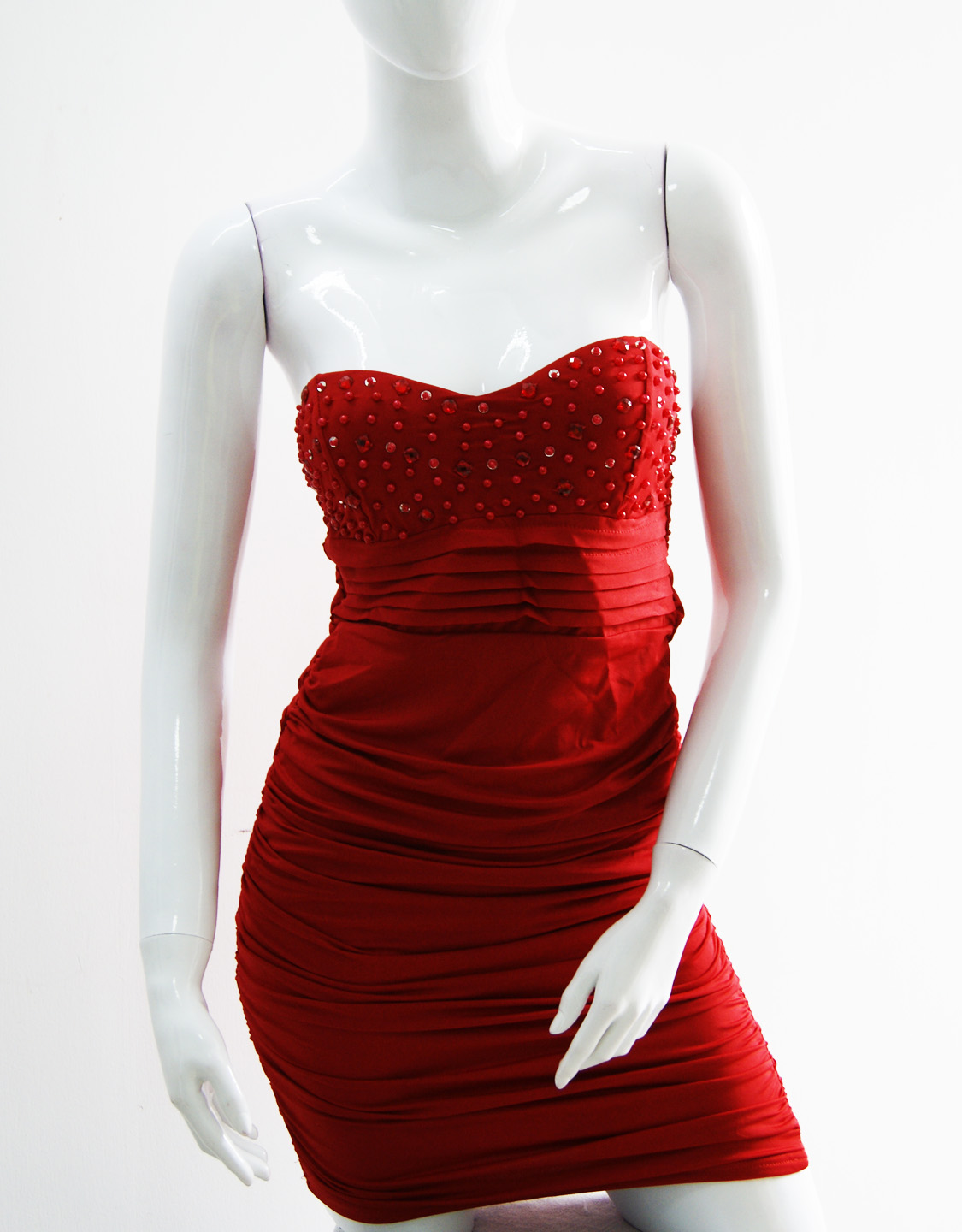 Strapless Reched Beading Dress Red