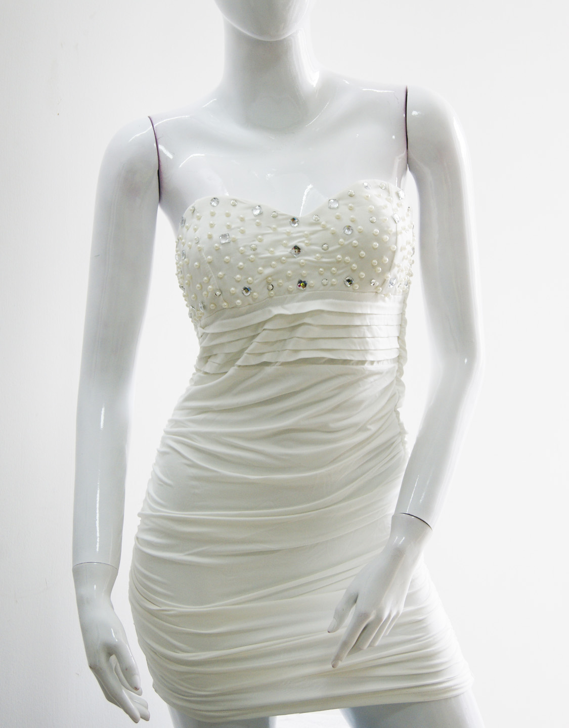 Sheathe in this Strapless Reched Beading Dress to feel sexy and get eye-services for a night out. At the moment, we have seven colors for your choose, the blue, black, white, red, rose, purple,and pink online available.This dress also with the strapless design accent with the sweetheart neckline with beading detail.