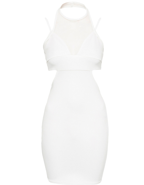 You will be more sexy in this bodycon dress. Dress in jersey from this. Tight model with rounded neck and party with mesh top front. Open in the back and the sides.