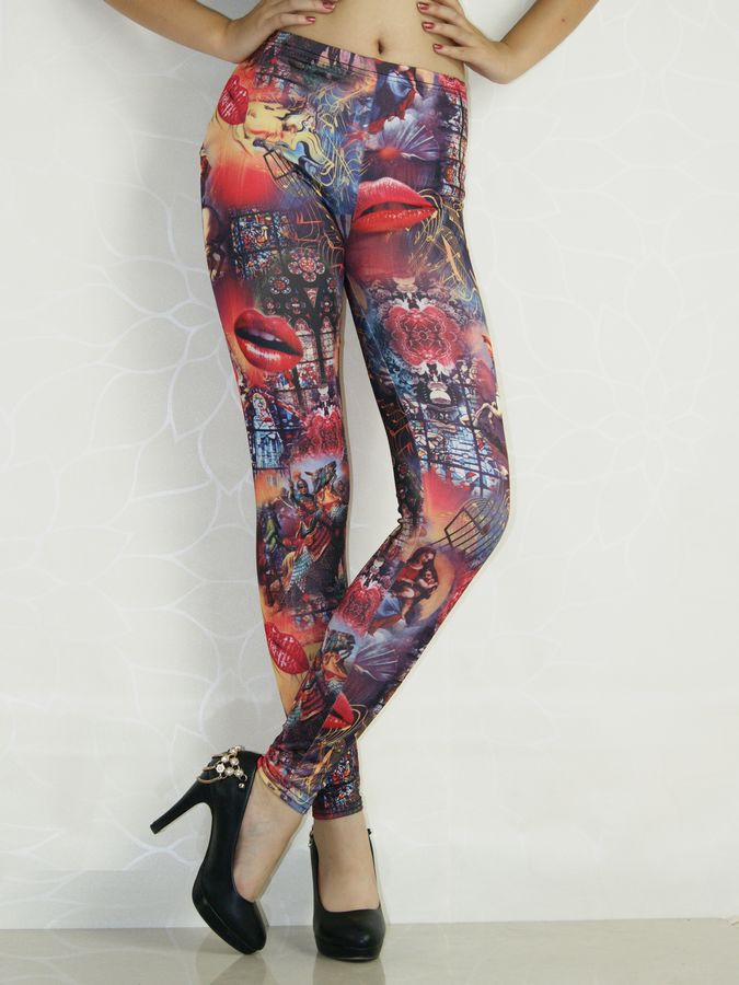 We Specialize in Women's Sexy Leggings.Stunning Baroque Art Print Leggings are a wardrobe must have for any girl today! This style legging has bright colored with red kiss and pictures to be at your comfortable. It is extremely soft, fit to wear, easy to move and easy to excise.