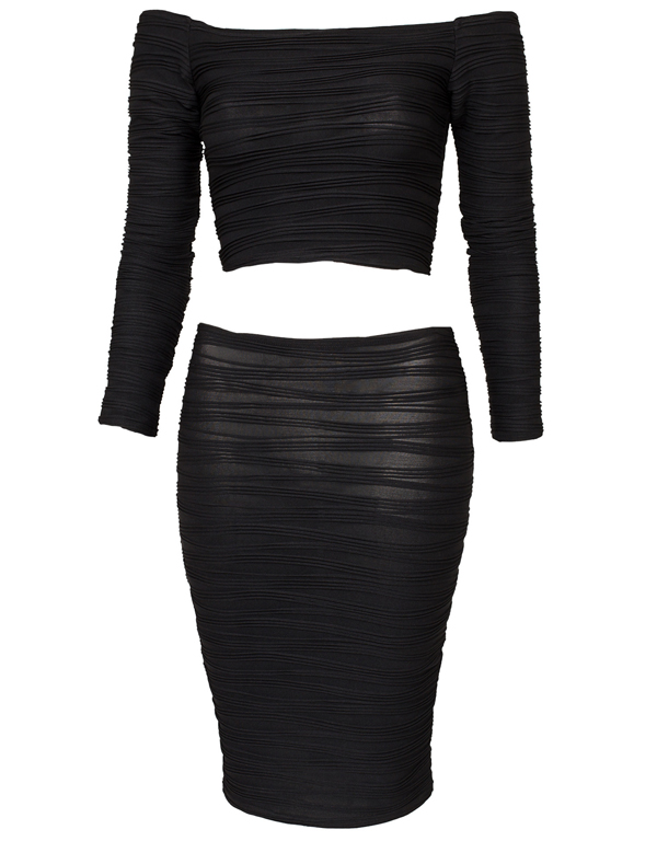 Subtle Ripples Textured Off-shoulder Skirt Set