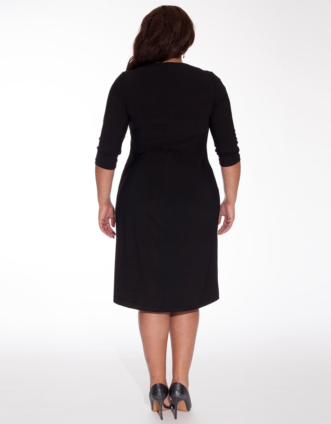 Whole black simple dress, short sleeves, V neck, tie waist. This special night-robe design make you stand out of people around you.