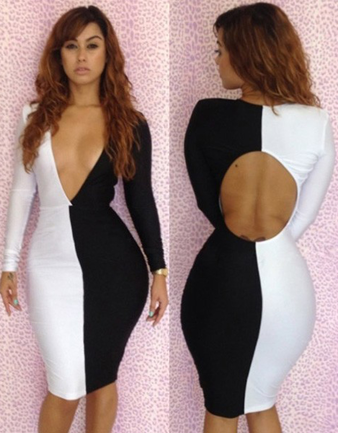 This bodycon dress is refined cut to a deep V neck to the waist, extremely low, and the cutout back design is meant to setoff it. Color block clothes usually give people strong visual impacts. Show every last of sexy curve in this sexy dress.