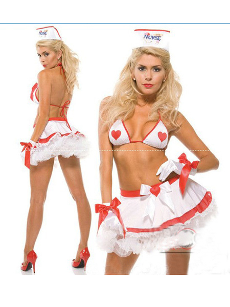 Wholesale Sexy Costumes from China sexy lingerie manufacturer.White Orange Heart Lace Nurse Costume is designed with white orange heart pattern on the bikini top and bowknot lace mini skirt.This is just the alluring nurse costume.Since nurse costume is so popular among man that you will be the spotlight at cosplay party.Of course,you also can wear it to please your boyfriend and he must fall at your feet in seconds.Wearing your high-heeled shoes with this stunner can elongate your legs that can increase your sexy index.If you have any question about our store,please don't hesitate to visit our website and contact with us.