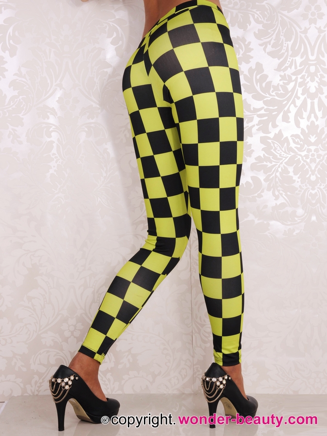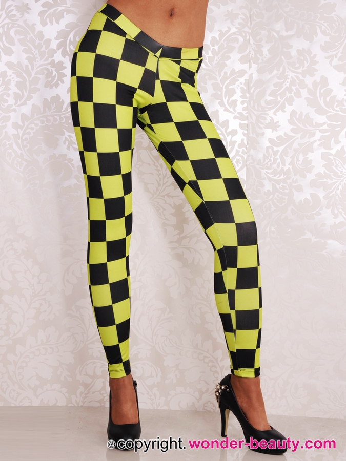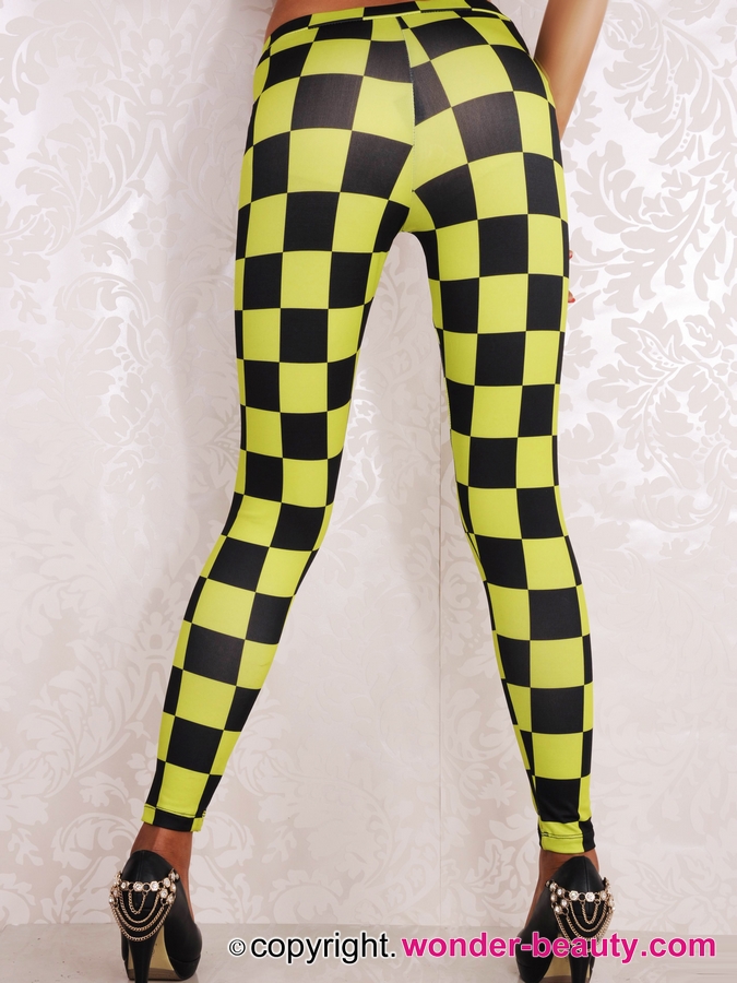 Yellow and balck, classic contrasting collocation.Yellow And Black Checks Leggings features stunning stretchy and snug wearing. Besides, the sexy slinky style makes you look more slender and taller than before.These leggings are perfect for casualwear, eveningwear and summerwear!